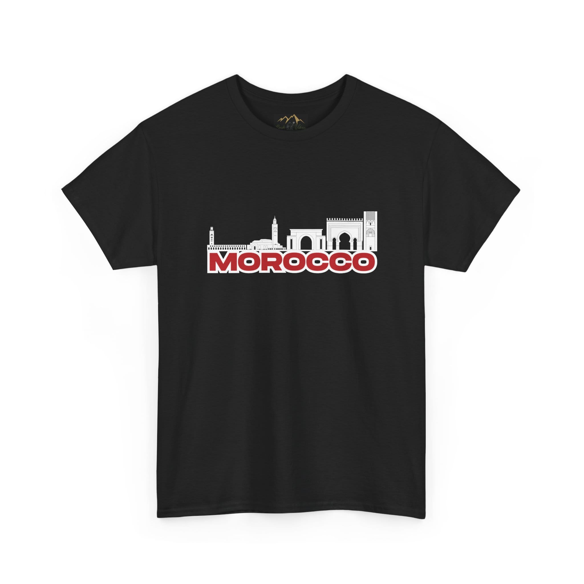 Morocco Skyline T-Shirt – Red Bold Text & Architectural Silhouette